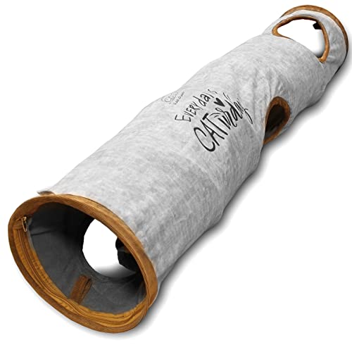 Tunnel pour Chat KaraLuna Premium 120 x 24 cm I 3 Judas et balles de Jeu I Jouets pour Chats d'intérieur Tunnel pour Chat Tunnel Gris Lapin Tunnel de Jeu Pliable