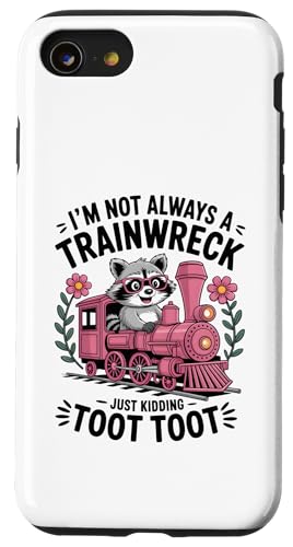 Im Not Always a Trainwreck Joli Train Tut Tut Tut en Forme de Raton Laveur Rose Coque pour iPhone SE (2020) / 7/8