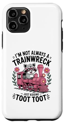 Im Not Always a Trainwreck Joli Train Tut Tut Tut en Forme de Raton Laveur Rose Coque pour iPhone 11 Pro