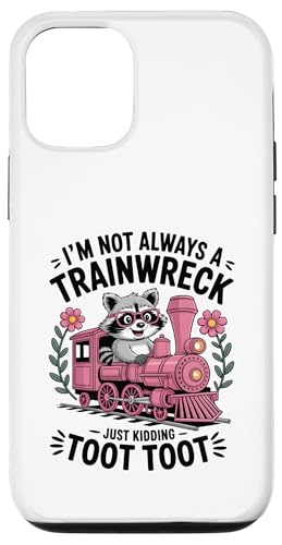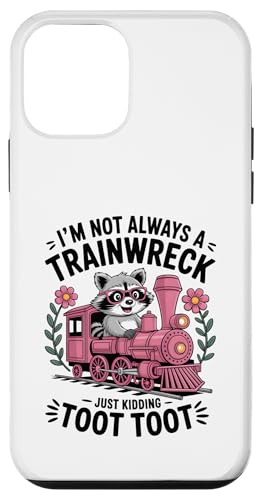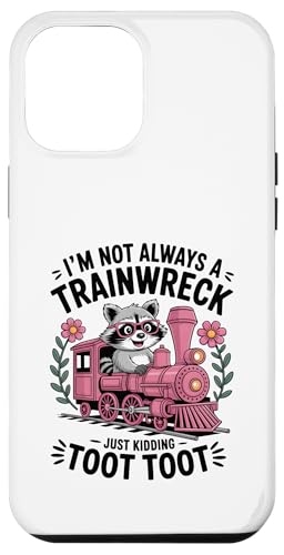 Im Not Always a Trainwreck Joli Train Tut Tut Tut en Forme de Raton Laveur Rose Coque pour iPhone 12/12 Pro