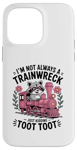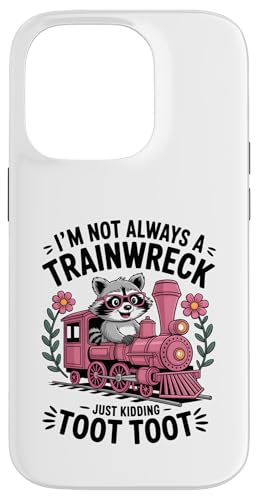 Im Not Always a Trainwreck Joli Train Tut Tut Tut en Forme de Raton Laveur Rose Coque pour iPhone 14 Pro