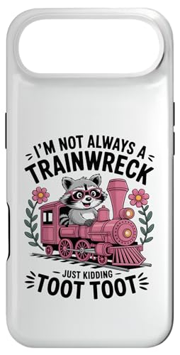 Im Not Always a Trainwreck Joli Train Tut Tut Tut en Forme de Raton Laveur Rose Coque pour iPhone 17
