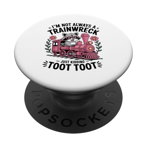 Im Not Always a Trainwreck Joli Train Tut Tut Tut en Forme de Raton Laveur Rose PopSockets PopGrip Adhésif