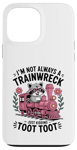 Im Not Always a Trainwreck Joli Train Tut Tut Tut en Forme de Raton Laveur Rose Coque pour iPhone 13 Pro Max