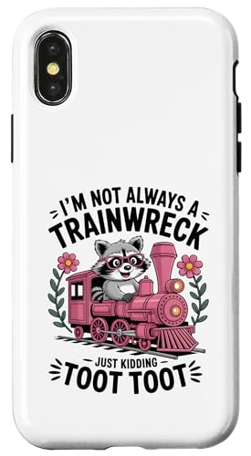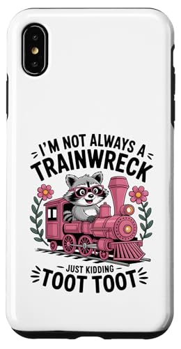 Im Not Always a Trainwreck Joli Train Tut Tut Tut en Forme de Raton Laveur Rose Coque pour iPhone XS Max