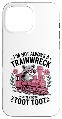 Im Not Always a Trainwreck Joli Train Tut Tut Tut en Forme de Raton Laveur Rose Coque pour iPhone 16 Pro