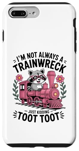 Im Not Always a Trainwreck Joli Train Tut Tut Tut en Forme de Raton Laveur Rose Coque pour iPhone 7 Plus/8 Plus