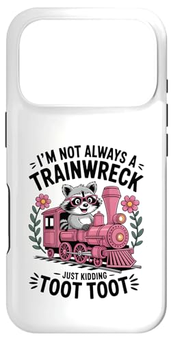 Im Not Always a Trainwreck Joli Train Tut Tut Tut en Forme de Raton Laveur Rose Coque pour iPhone 17 Pro Max