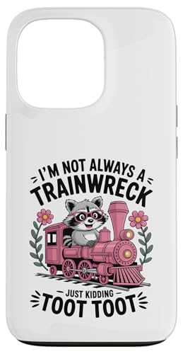 Im Not Always a Trainwreck Joli Train Tut Tut Tut en Forme de Raton Laveur Rose Coque pour iPhone 13 Pro