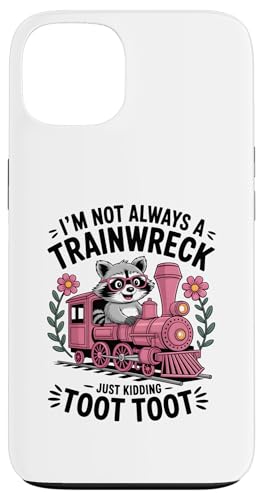 Im Not Always a Trainwreck Joli Train Tut Tut Tut en Forme de Raton Laveur Rose Coque pour iPhone 13