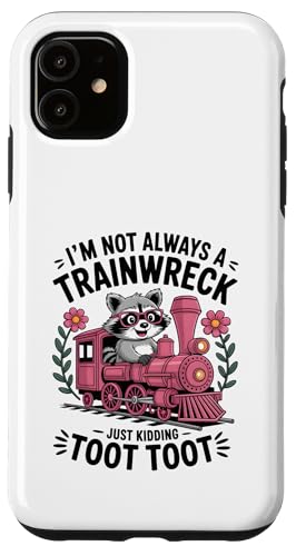 Im Not Always a Trainwreck Joli Train Tut Tut Tut en Forme de Raton Laveur Rose Coque pour iPhone 11
