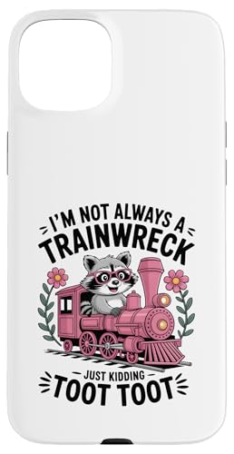 Im Not Always a Trainwreck Joli Train Tut Tut Tut en Forme de Raton Laveur Rose Coque pour iPhone 15 Plus