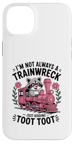 Im Not Always a Trainwreck Joli Train Tut Tut Tut en Forme de Raton Laveur Rose Coque pour iPhone 14 Plus
