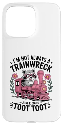 Im Not Always a Trainwreck Joli Train Tut Tut Tut en Forme de Raton Laveur Rose Coque pour iPhone 15 Pro Max