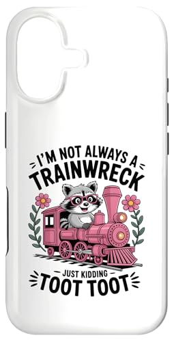 Im Not Always a Trainwreck Joli Train Tut Tut Tut en Forme de Raton Laveur Rose Coque pour iPhone 16 Plus