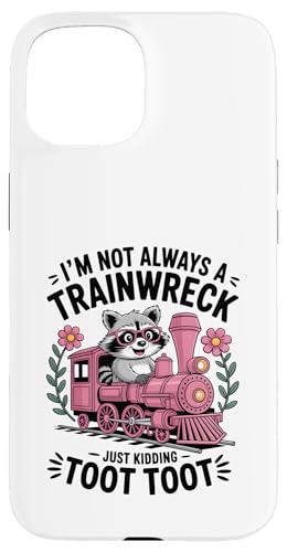 Im Not Always a Trainwreck Joli Train Tut Tut Tut en Forme de Raton Laveur Rose Coque pour iPhone 15