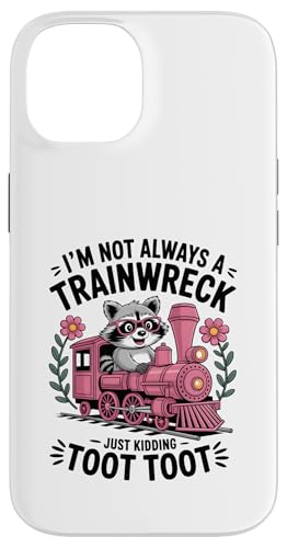 Im Not Always a Trainwreck Joli Train Tut Tut Tut en Forme de Raton Laveur Rose Coque pour iPhone 14