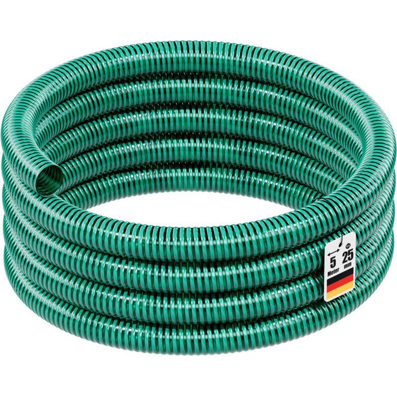 Wiltec Tuyau d'aspiration vert – 5 m / ø 25 mm (1') – avec Spirale de renforcement – Tube à pression souple en pvc – pour Arrosage Irrigation