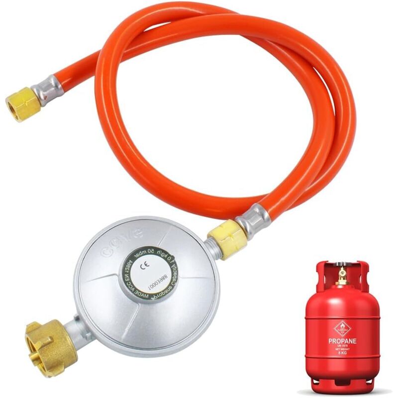 Réducteur de Pression de gaz 50mbar, Régulateur de Pression de gaz en kit avec Tuyau de gaz de 150cm de Long,pour réchaud à gaz, barbecues à gaz ou