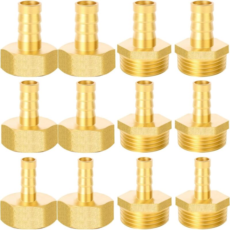 Lot de 12 raccords de tuyau 1/2', 8 mm, 10 mm, 12 mm, filetage extérieur et filetage intérieur pour tuyau à air, tuyau à gaz, tuyau d'eau
