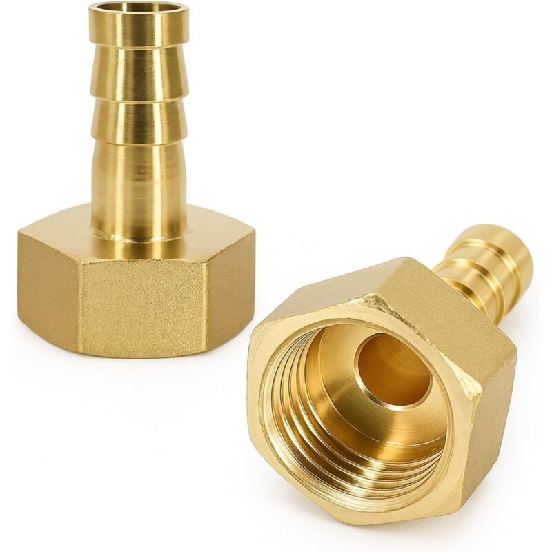 2 Pièces Barbed Brass Raccords Laiton Cannelés 10mm x 1/2 PT Femelle, Adaptateurs de Tuyau pour Air, Eau, Huile, Carburant, Gaz Inerte, Raccords