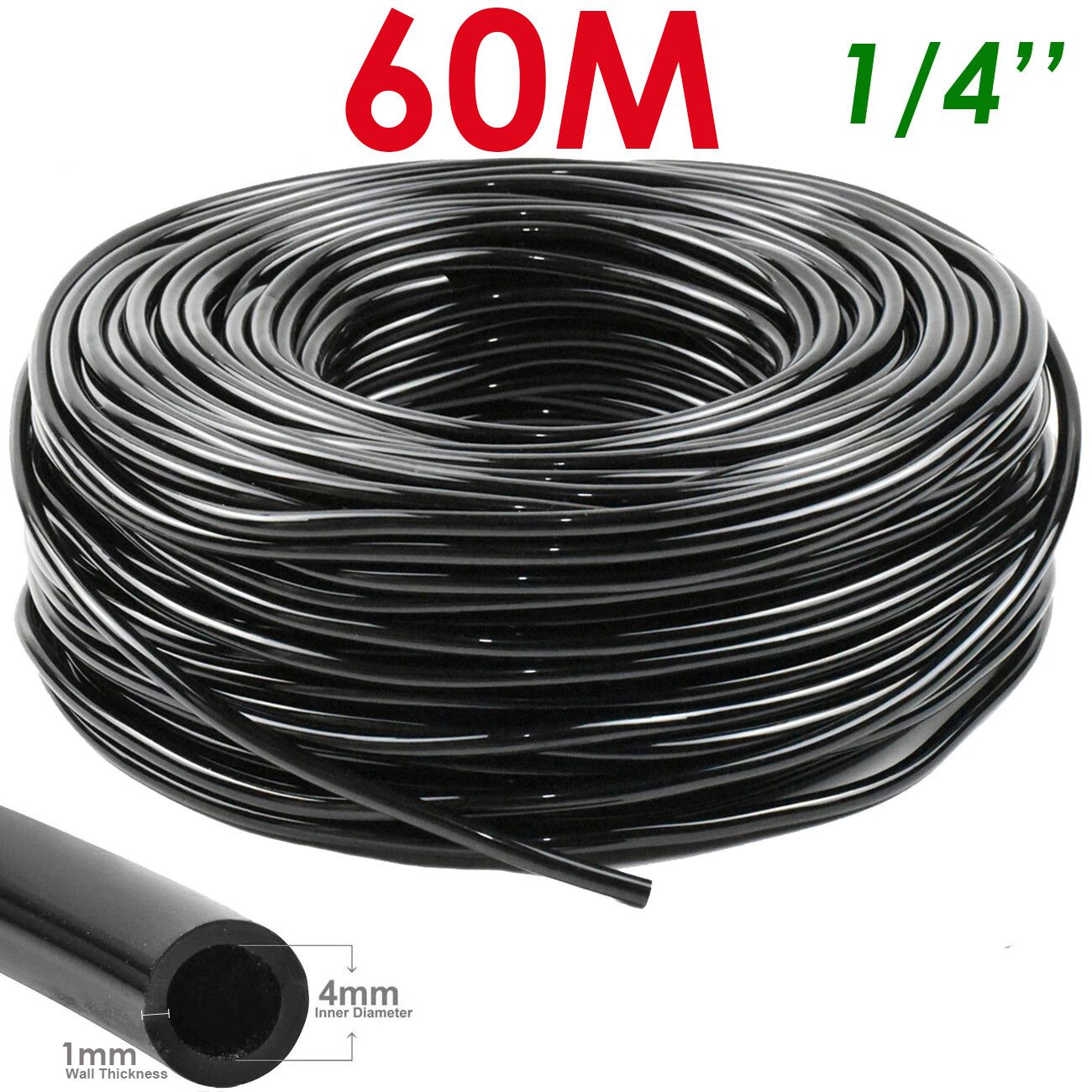 WUJIE 5-100m tuyau d'arrosage de jardin 4/7mm PVC Micro tuyau d'irrigation goutte à goutte tube d'irrigation arroseur 1/4 ''pelouse balcon serre - Type 60M (196.85ft)-1/4