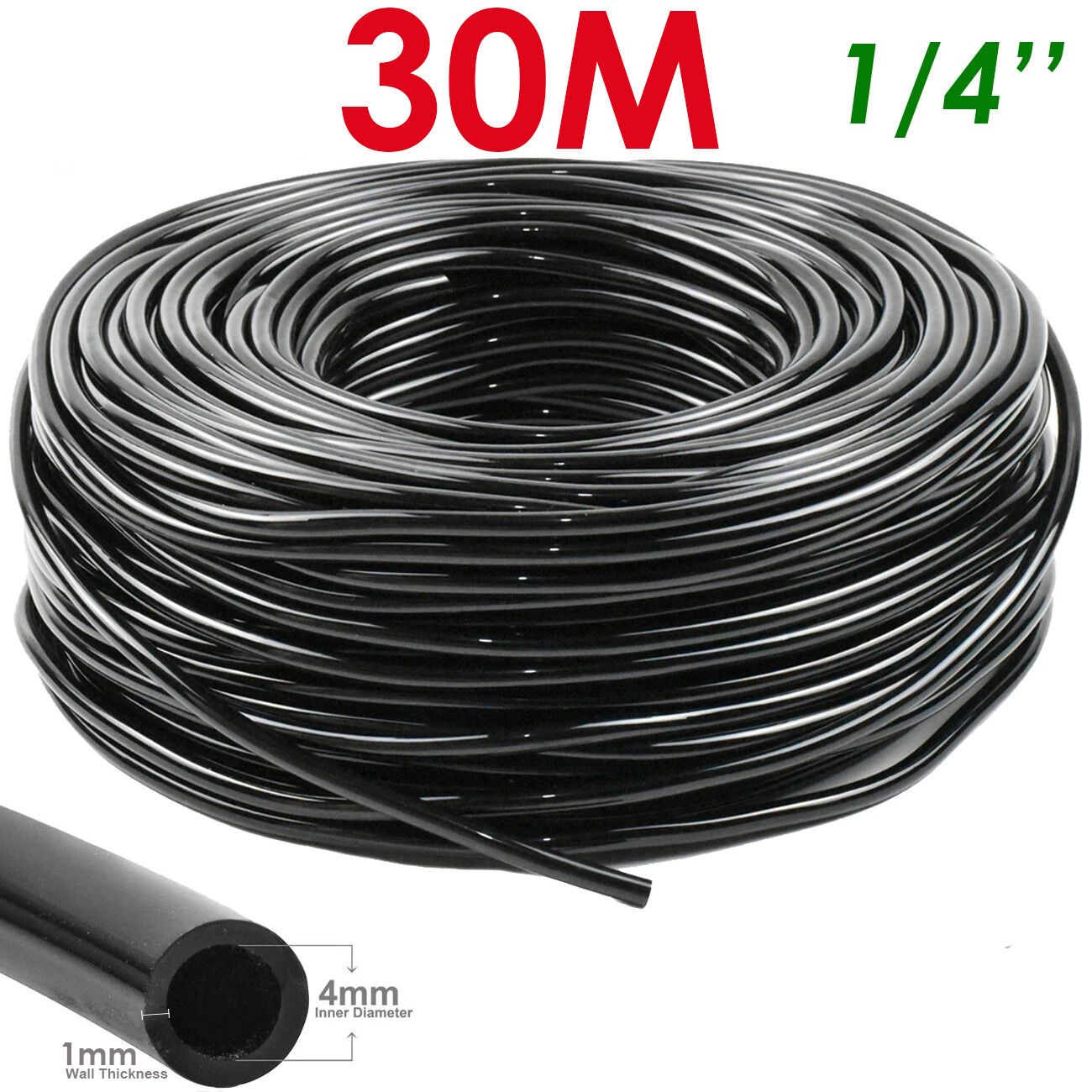 WUJIE 5-100m tuyau d'arrosage de jardin 4/7mm PVC Micro tuyau d'irrigation goutte à goutte tube d'irrigation arroseur 1/4 ''pelouse balcon serre - Type 30M (98.4ft)-1/4