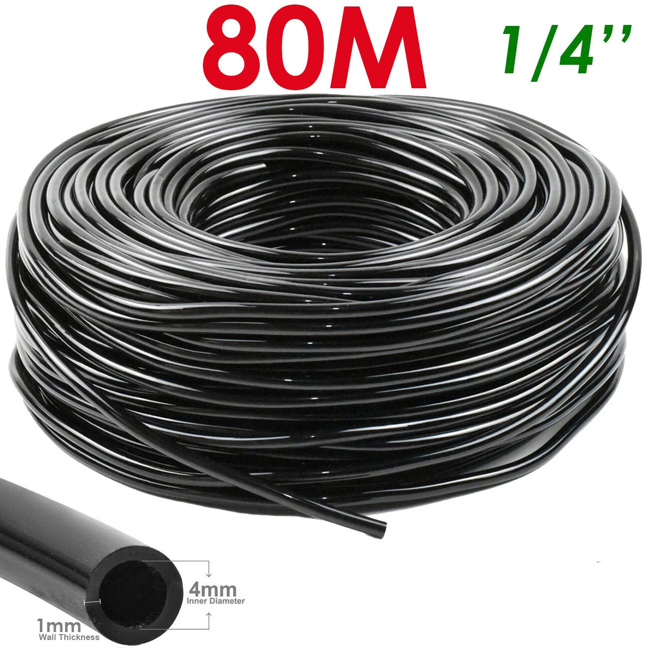 WUJIE 5-100m tuyau d'arrosage de jardin 4/7mm PVC Micro tuyau d'irrigation goutte à goutte tube d'irrigation arroseur 1/4 ''pelouse balcon serre - Type 80M (262.47ft)-1/4
