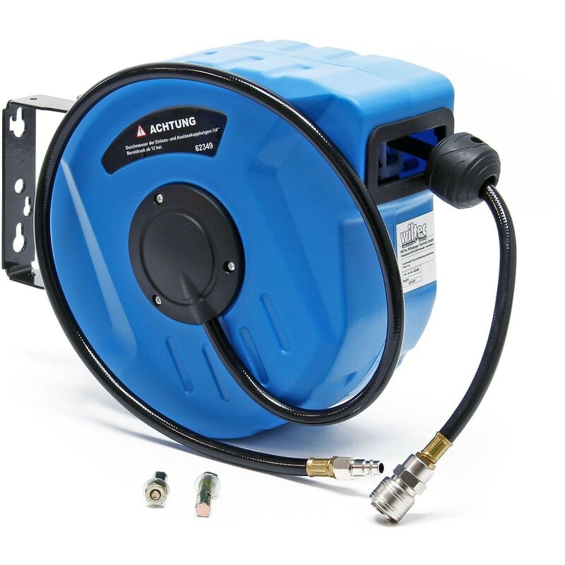 Wiltec - Dévidoir automatique avec tuyau 20 m, 370 x 480 x 200 mm, Montage mural, Enrouleur de tuyau pneumatique 8 bar, Pivotable à 180°, connexion