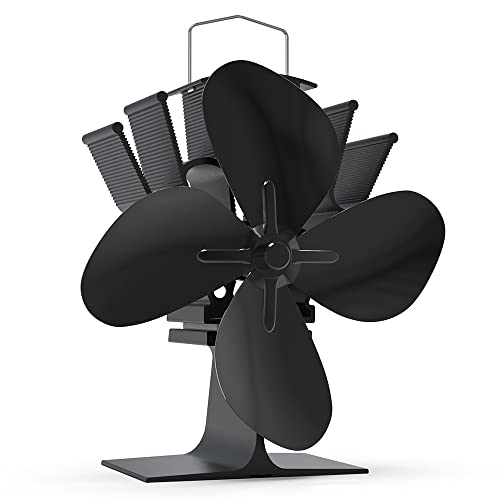vounot Ventilateur Poêle à Bois 4 Lames Ventilateur Cheminée Appareil de Chauffage Alimenté Fixé sur le Tuyau de Cheminée Protection Contre le Surchauffe Noir