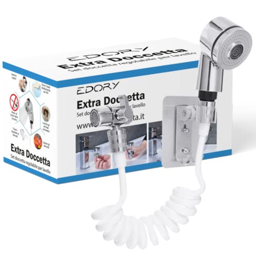 EDORY Kit de douche à main pour lavabo | Pomme de douche en ABS avec tuyau externe Pulvérisateur Kit de rinçage Idéal pour salle de bain, lavabo, évier | Parfait pour nettoyer et laver les cheveux,