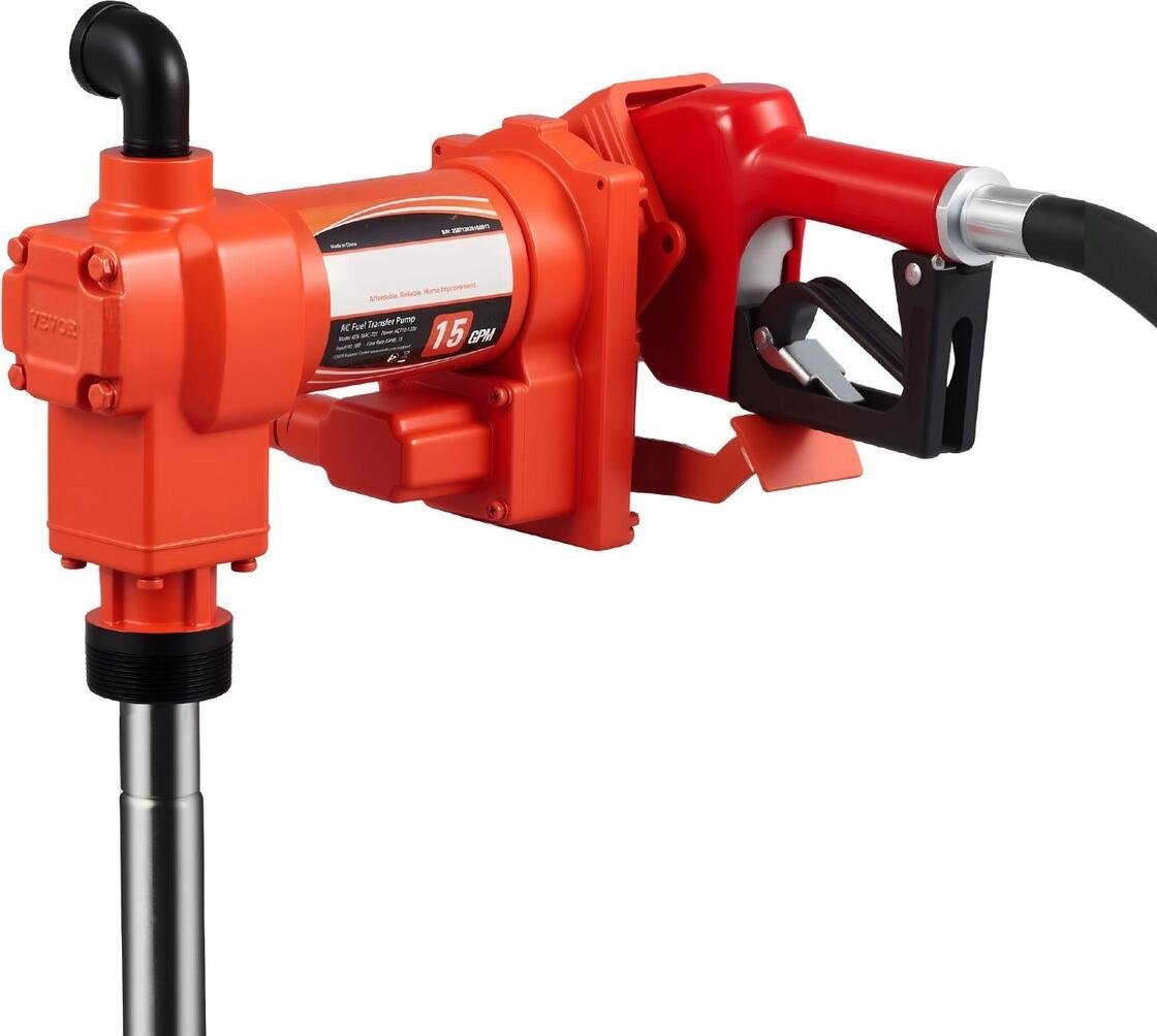 Pompe de transfert de carburant 230 V, 15 GPM 57 L/min, pompe électrique à huile CA, avec pistolet à carburant à arrêt automatique et tuyau de refoulement, kit à haut débit pour essence, diesel, kérosène, biodiesel, mélanges d'éthanol
