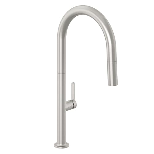 KLUDI Aurea Robinet de cuisine (acier inoxydable brossé) - Pivotant à 360 degrés - Mitigeur d'évier à une main avec tuyau extensible et douchette avec bouton de commutation - 2 modes - Robinet de