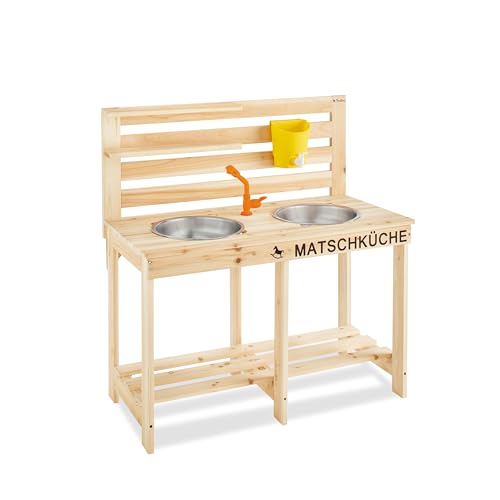 PINOLINO Malu Cuisine de Jeu pour Enfants en Sapin Massif avec 2 Bols en Acier Inoxydable, Robinet, raccord de Tuyau et réservoir d'eau Amovible, pour Enfants à partir de 3 Ans
