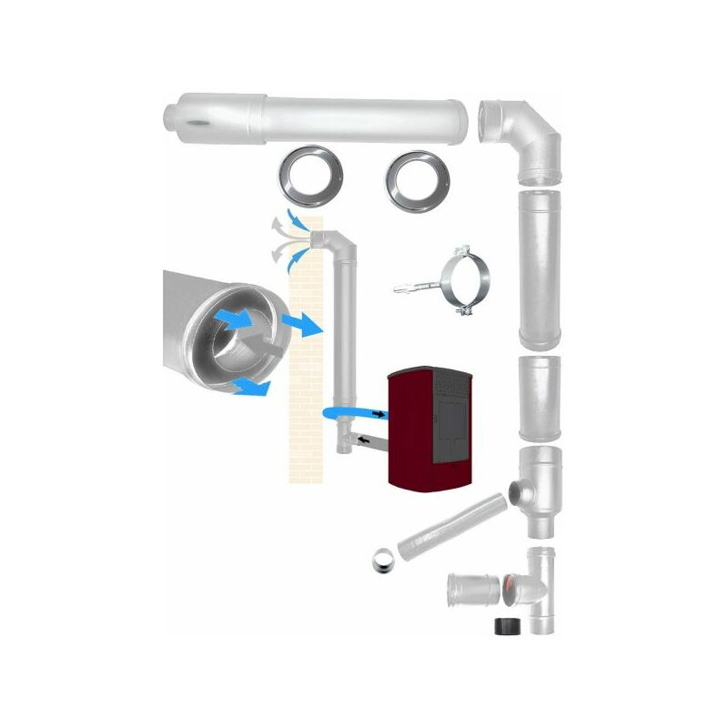 Kit de Cheminee en ACIER INOXYDABLE dn 80 130, entree d'air d'evacuation des fumees coaxiale pour poele a granules, fabrique en italie