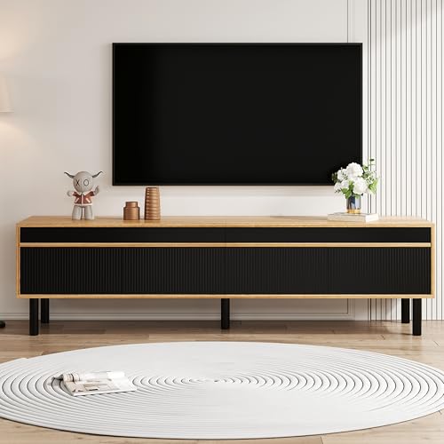 XJBTBA Élégance stylée : Meuble TV 170 cm en Bois Noir, Meuble TV, Meuble Bas avec tiroirs, Fonctions de Rangement polyvalentes Apparence Unique.
