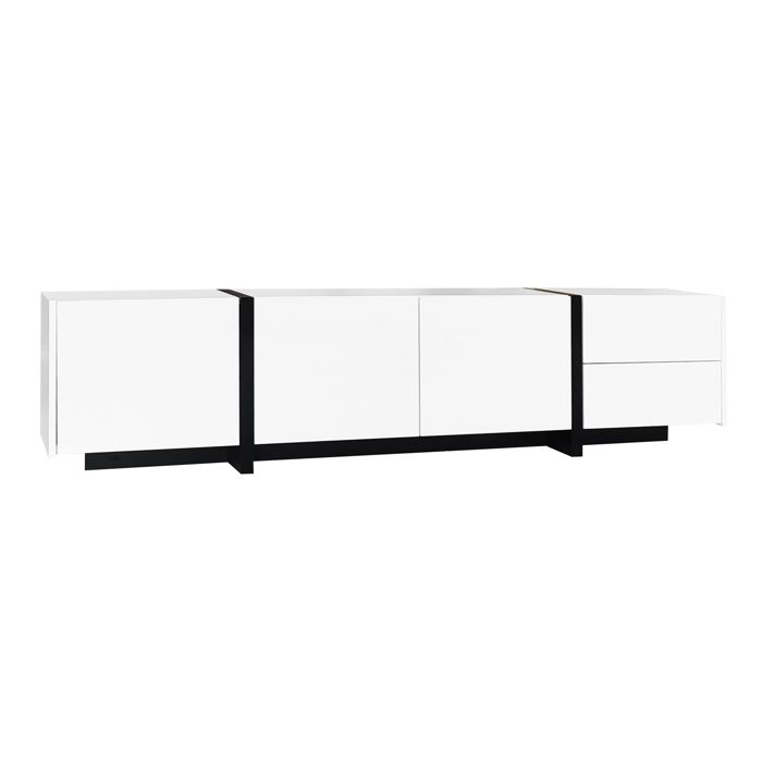 Meuble TV 170 cm avec 4 Portes de Rangement Armoire de Télévision Meuble Télé de Salon Blanc et doré