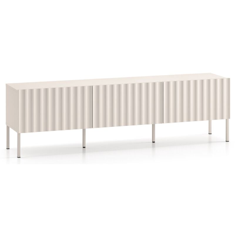 Meuble tv 170 cm avec portes placage bois, pieds métal et poignées dorées, design moderne et élégant