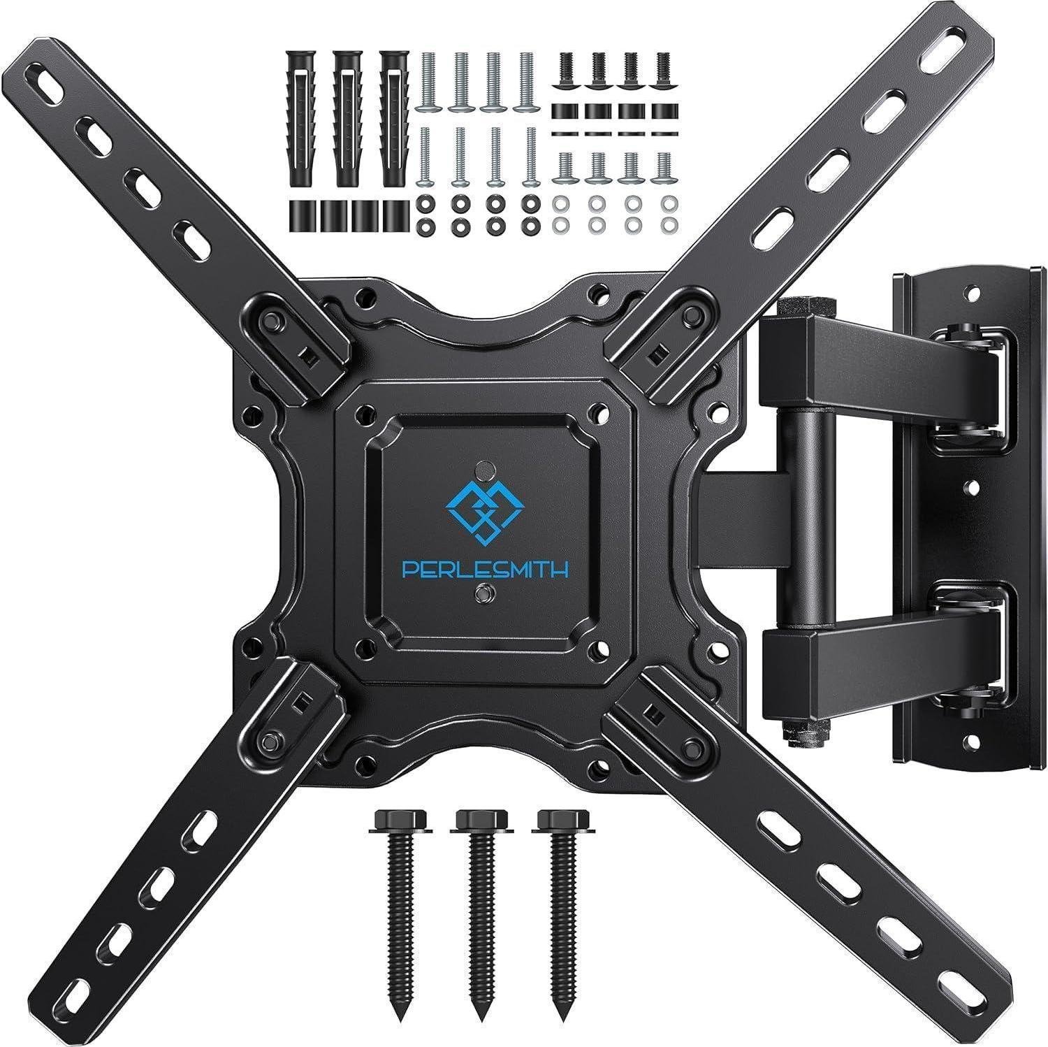 PERLESMITH Support Mural TV 26-60 Pouces Jusqu'à 35KG, Fixation Support TV Mural pour Télévision & Moniteur, Orientable (± 90°) Incline (+ 5°, -15°) et Étend, Max VESA 400x400mm