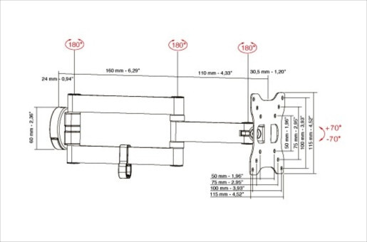 Esperanza Support TV 26"-70" pouces Support mural, Charge max 30kg, Angle de rotation 180°, VESA min-max Standard : 75x75-400x400 [mm]