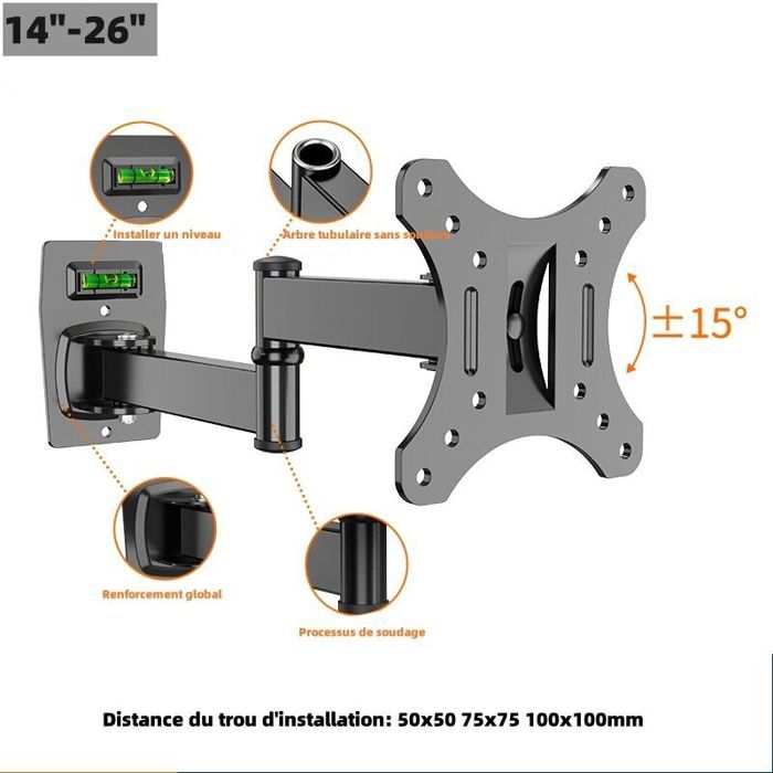 Support Mural TV à Mouvement Complet for TV 26-55 Pouces Support TV Flottant pivotant Inclinaison réglage Horizontal Support Mural TV