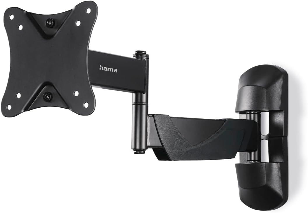 Hama Support Mural TV Inclinable Pivotant Extensible Garantie 10ans (TV 10 à 26 Pouces, VESA jusqu'à 100 x 100, 180°, 3 articulations, Support Extensible, Cache Cables, Chevilles Fisher) Noir