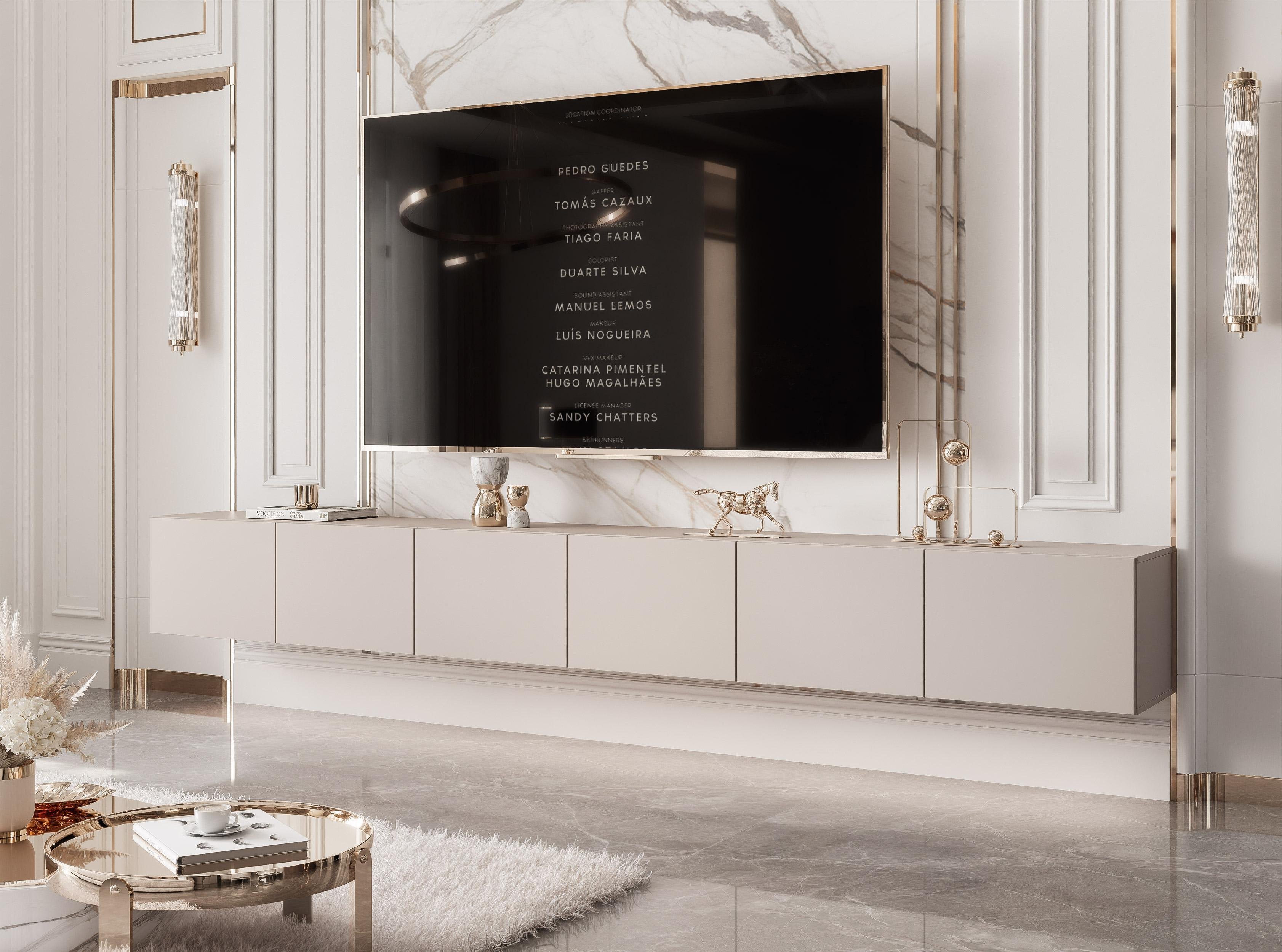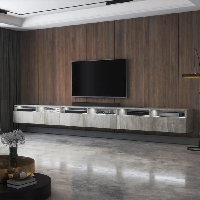 TV-Lowboard ANGEL 300 cm avec éclairage LED Meuble TV Salon Meuble média Meuble TV suspendu Cachemire