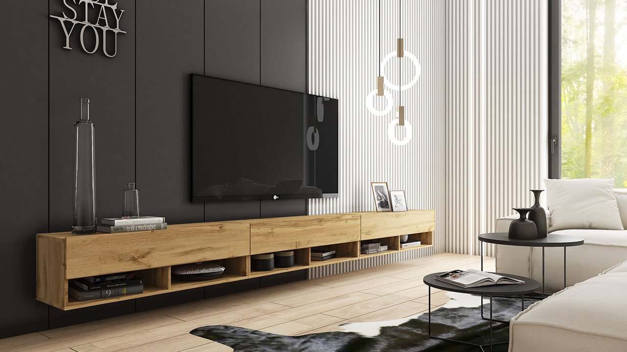 Meuble TV 300 cm avec éclairage LED WILLA A – châtaignier