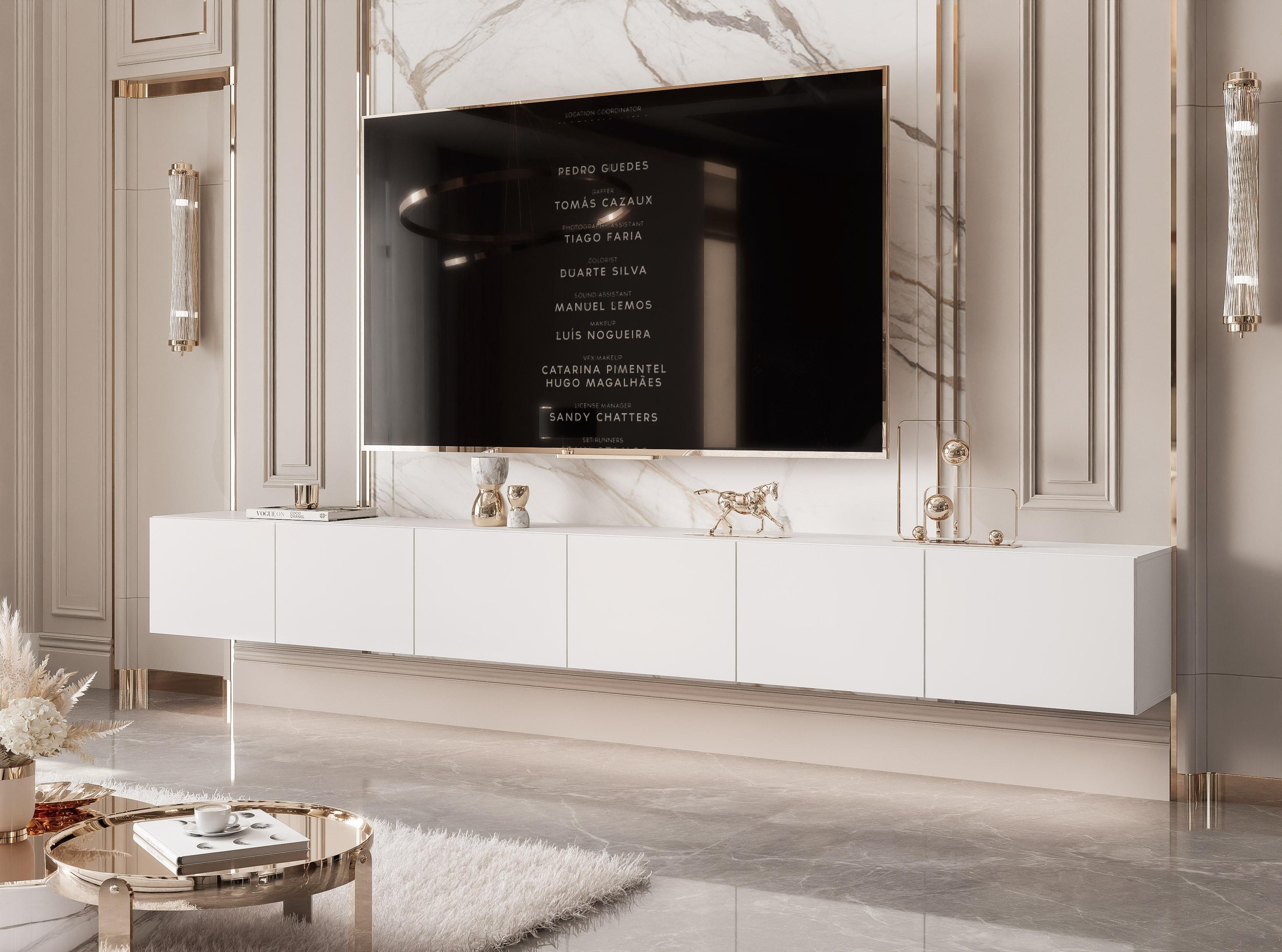 Sogood Meuble TV Bas 300 cm Armoire TV Blanc Mat Table de Télévision Salon avec Portes Meuble TV Suspendu MBTV02