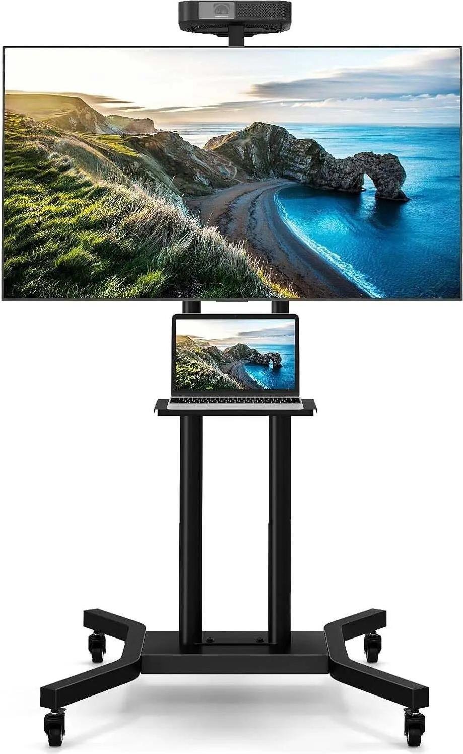 Meuble TV à roulettes - Chariot TV mobile - Pour téléviseurs LCD/LED de 81 à 178 cm - Jusqu'à 50 kg - VESA 600×400 mm - Tablette réglable en hauteur - Noir