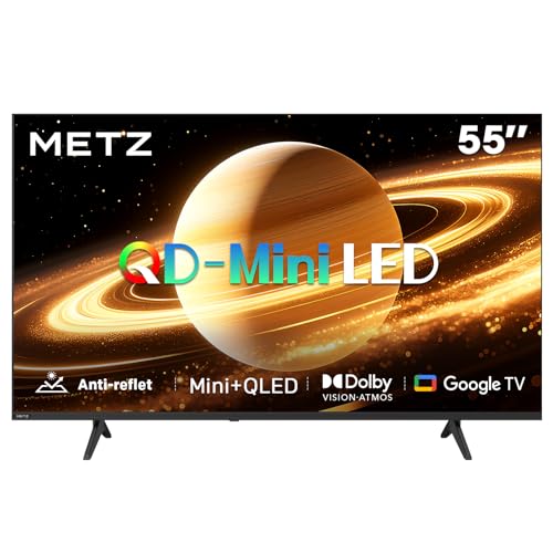 Metz Mini LED TV QLED 55 Pouces (139 cm) Smart 4K Television Google TV Local Dimming Écran Mat Anti-reflet Dolby Atmos MEMC HDR 10+ Bluetooth S AI Processeur Tuner DVB-T/-T2/-C/-S/-S2 CI+ (MNH7000Z)