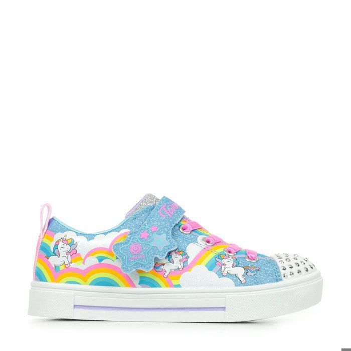 Skechers Twinkle Toes Twinkle Sparks Jumpin Clouds — Baskets fille lumineuses bleu scratch & zip