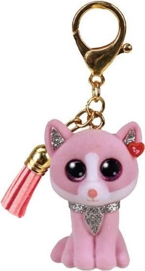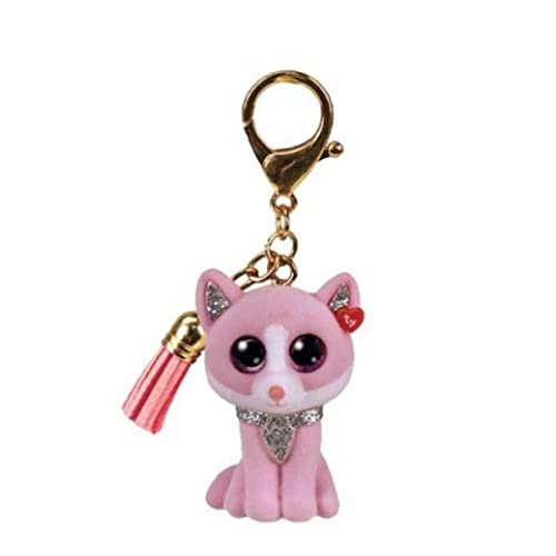 Ty - Anneau Porte-clés Mini Boos Clips - Chat - Fiona - Rose - avec Gland Rose - Le Porte-clés Tendance inspiré des célèbres Peluches aux Yeux Grands Scintillants - 10 Cm - 25065