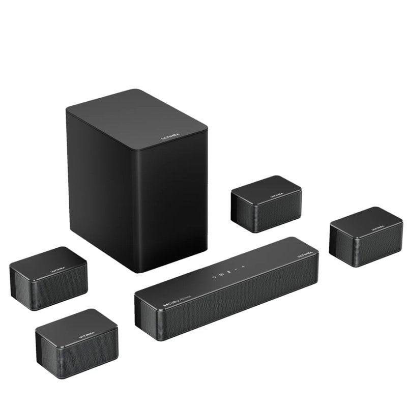 Barre de son ULTIMEA Poseidon D80 Boom 7.1 canaux 500W Dolby Atmos, caisson de basses sans fil et 4 enceintes surround, home cinéma TV, contrôle par application